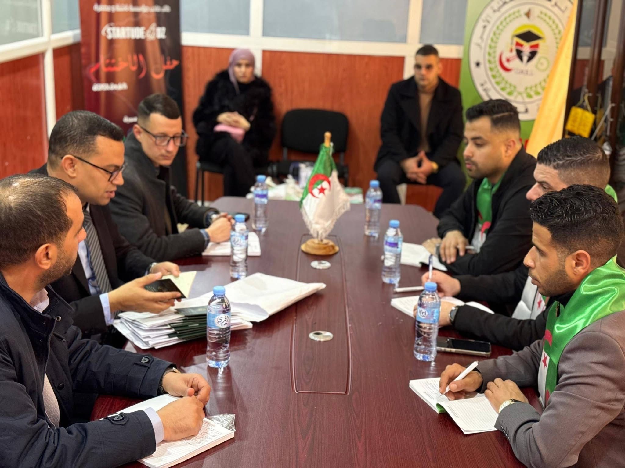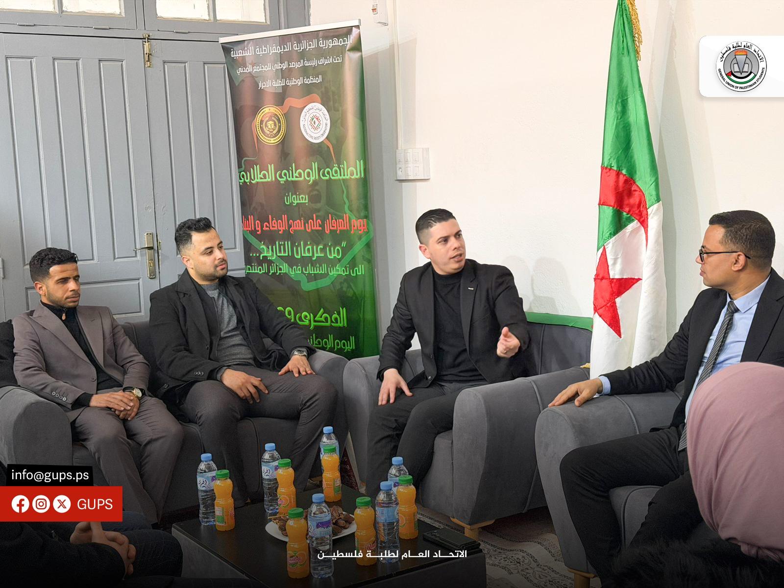 كما تناول اللقاء واقع الحركة الطلابية في فلسطين والجزائر، وسبل تعزيز التنسيق وتشبيك العلاقات بين التنظيمات الطلابية في البلدين، بما يخدم قضايا الطلبة ويدعم حضورهم في الفضاءات الأكاديمية والوطنية. وتم التطرق إلى أوضاع الطلبة الفلسطينيين في الجزائر، والتأكيد على أهمية مرافقتهم أكاديميًا وتنظيميًا، وتوفير البيئة الملائمة التي تساعدهم على الاستقرار والتفوق.
