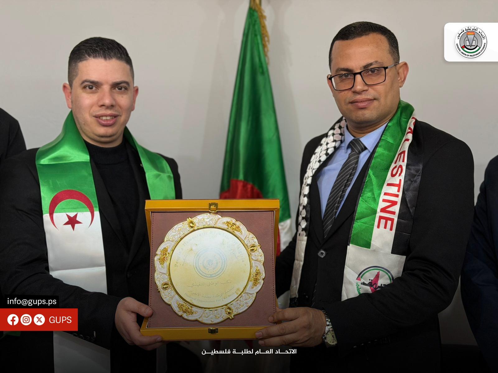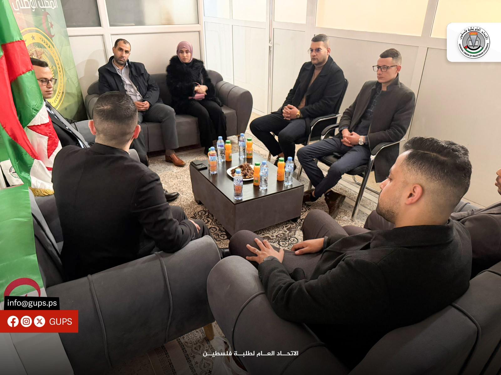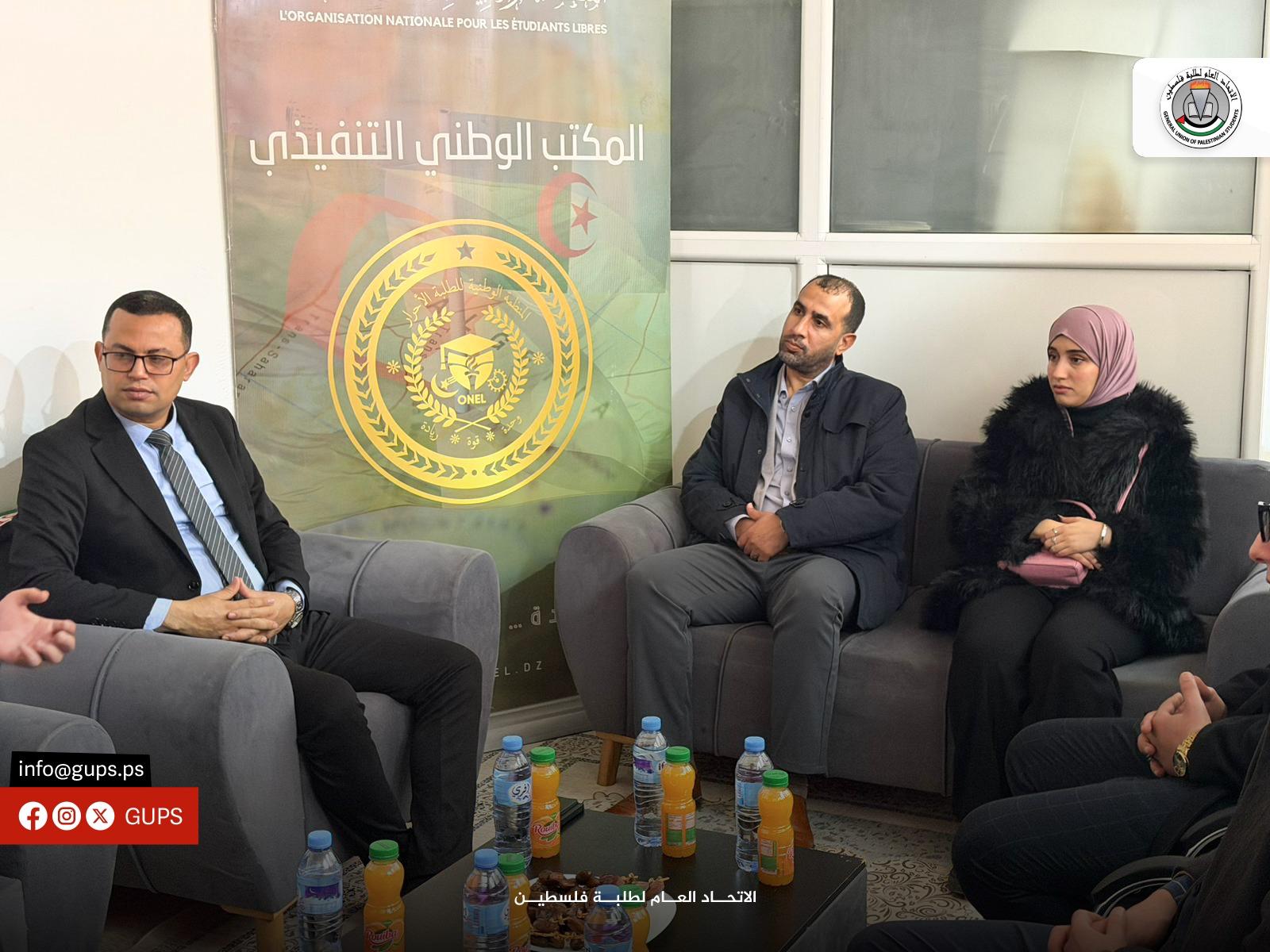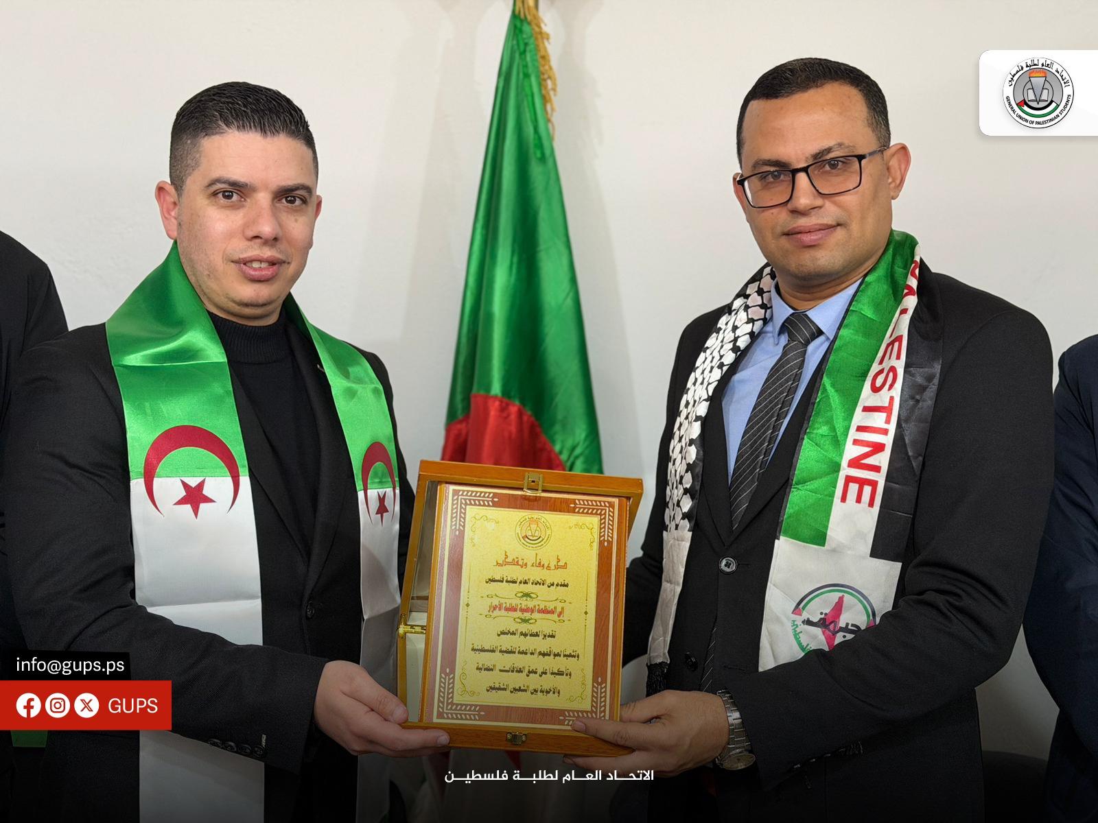وخلال اللقاء، وجّه الاتحاد العام لطلبة فلسطين دعوة رسمية للأمين العام الوطني لحضور أعمال مؤتمر انتخاب فرع الاتحاد في الجزائر.